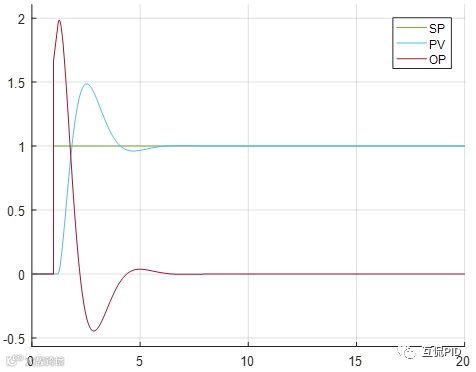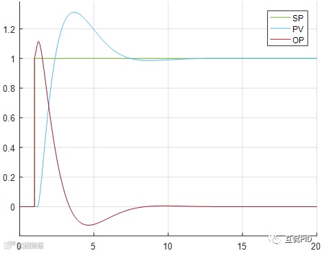 使用这组PID参数进行设定值阶跃变化响应曲线如下图所示。