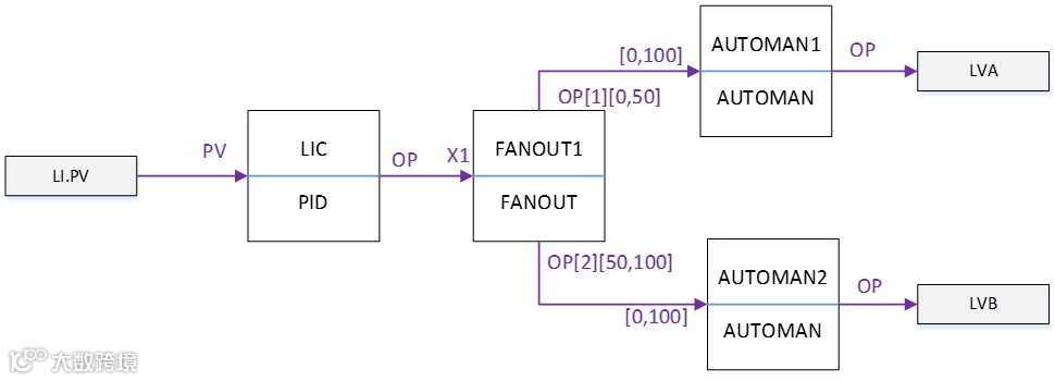 控制液位。在任何时候都只有一个调节阀用于液位控制,每个阀门的最大流量都不足以控制液位所以要两个阀门同时使用。