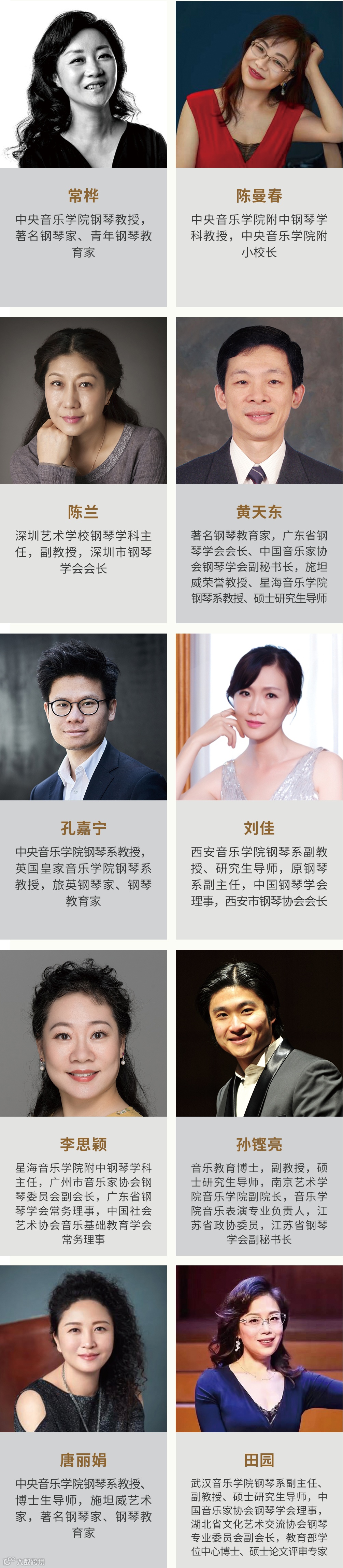 所有教授均有着丰富的国内外钢琴比赛评审经验,不仅确保比赛的公平公正,以及权威性,还可以让每位参赛选手得到评委老师具有针对性和指导作用的评价及建议,通过钢琴大师们的音乐审美以及极高的演奏水准来进行自我审视,自我提升。而参加音乐节的同学们则可以与名师们进行四次的一对一授课,接受名师指点,欣赏大师音乐会,近距离感受大师风范,参加大师讲座,聆听大师讲授音乐演奏心得与感悟。每一位参赛者和学员都将在此次的音乐盛会中收获满满,尽兴而归。