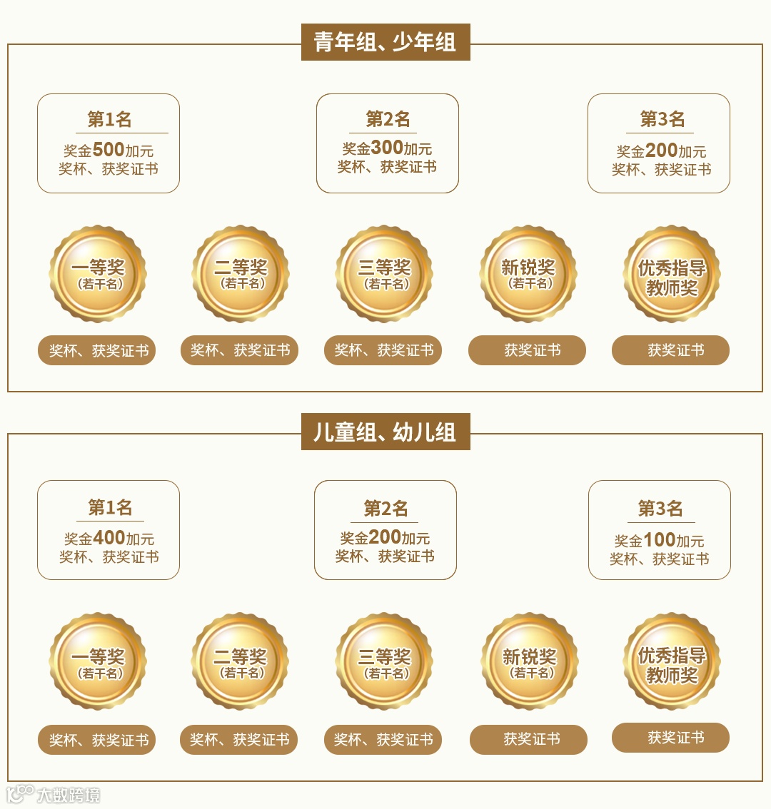 获奖证书及奖杯(三等奖及以上有奖杯),证书含全体评委签字 |