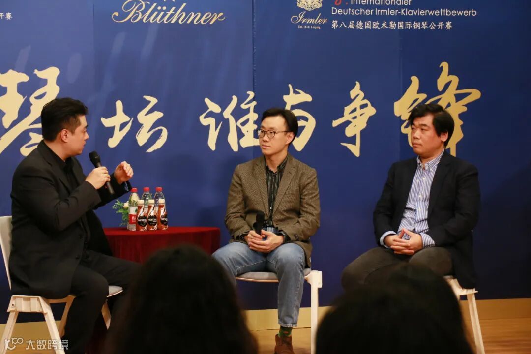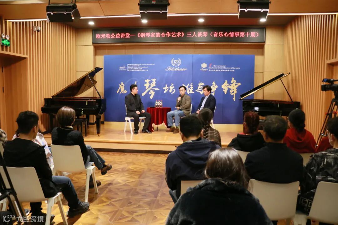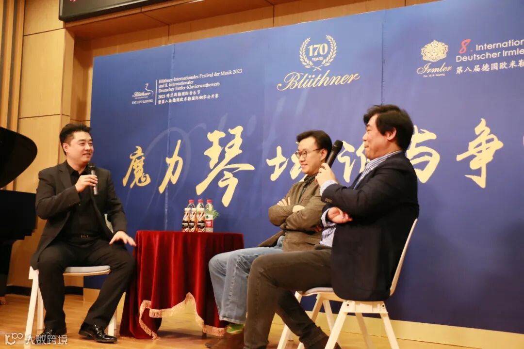 主持人刘英楠老师向两位钢琴家提问除了和对方合作双钢琴演奏之外