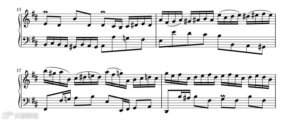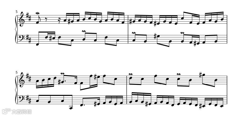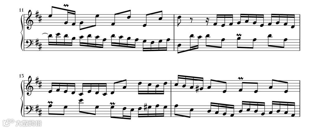 作品的第一部分为第1小节到第12小节的第一个音,第二部分为第12小节开始到18小节的第一个音,第三部分为第18小节到第22小节。