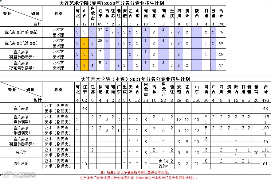 备注:音乐表演专业包含声乐演唱招考方向、乐器演奏招考方向、键盘乐器演奏招考方向。表演专业包含影视表演招考方向。具体招生计划以各省级招考部门最终公布为准。
