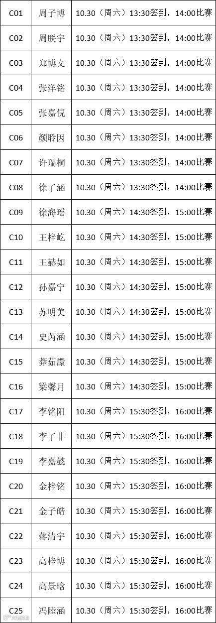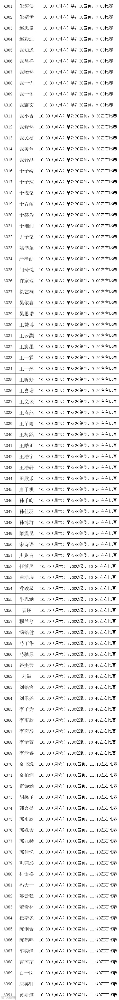 业余A1、A3组,业余C组以及幼儿B组选手比赛具体时间已通知及公示完毕。现场比赛时间有提前和延后的可能,请各位老师、家长、选手按照签到时间到达比赛场地,并听从组委会工作人员的安排等待比赛。