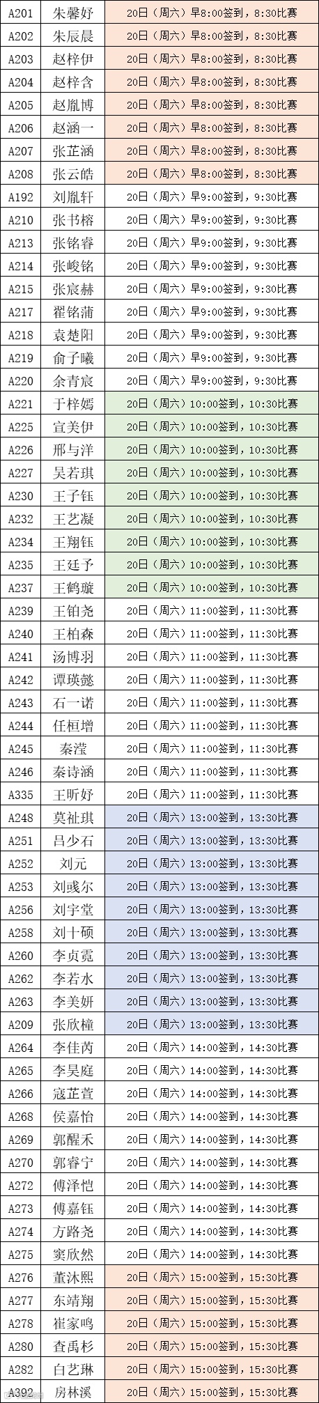 业余A2组选手比赛具体时间已通知及公示完毕。请各位老师、家长、选手按照签到时间到达比赛场地,并听从组委会工作人员的安排等待比赛。