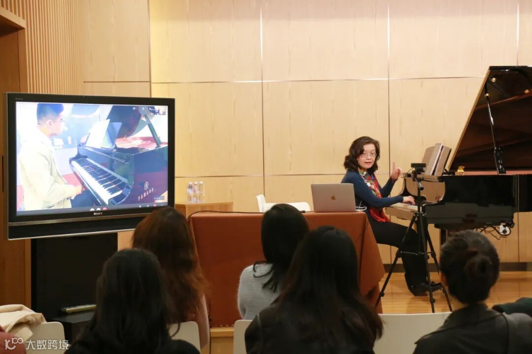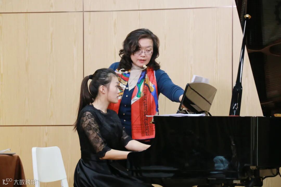 朴英教授从作曲的创作技法角度,分析了曲子的结构、和声以及句法的运用,通过丰富的创作技巧讲解,展示了作品原汁原味的民族风格在钢琴上的运用。