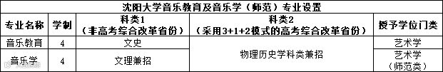 辽宁省:艺术类本科专业在辽宁省本科批第一阶段录取,使用辽宁省艺术类统考成绩,执行辽宁省统一投档原则,实行平行志愿投档录取模式,实行以1个“专业(含专门化)+学校”为1个志愿单位的志愿填报模式。音乐学(师范)、音乐表演专业按“专门化”填报志愿。