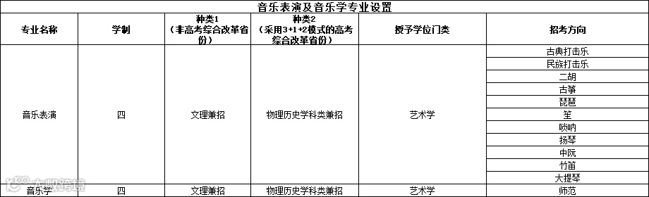音乐表演及音乐学专业设置: