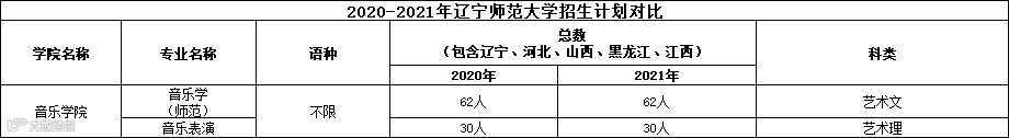 2020-2021年辽宁师范大学音乐表演及音乐学招生计划对比: