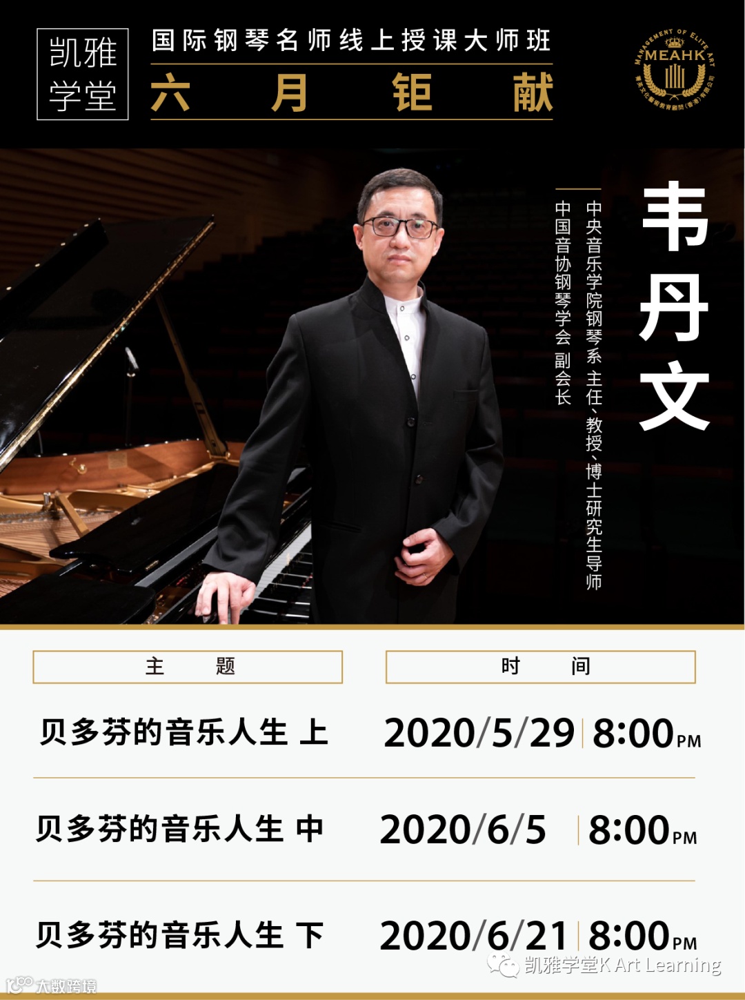 今年是贝多芬诞辰250周年纪念,凯雅学堂邀请北京中央音乐学院,韦丹文教授 重磅推出三场讲座,韦丹文老师将会在课堂与学员互动问答,千万别错过唷!