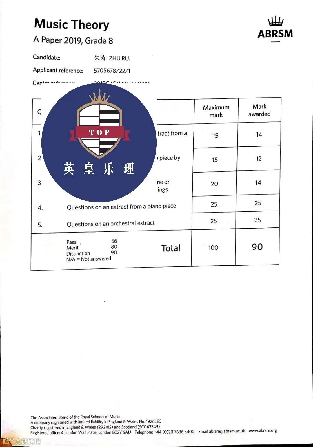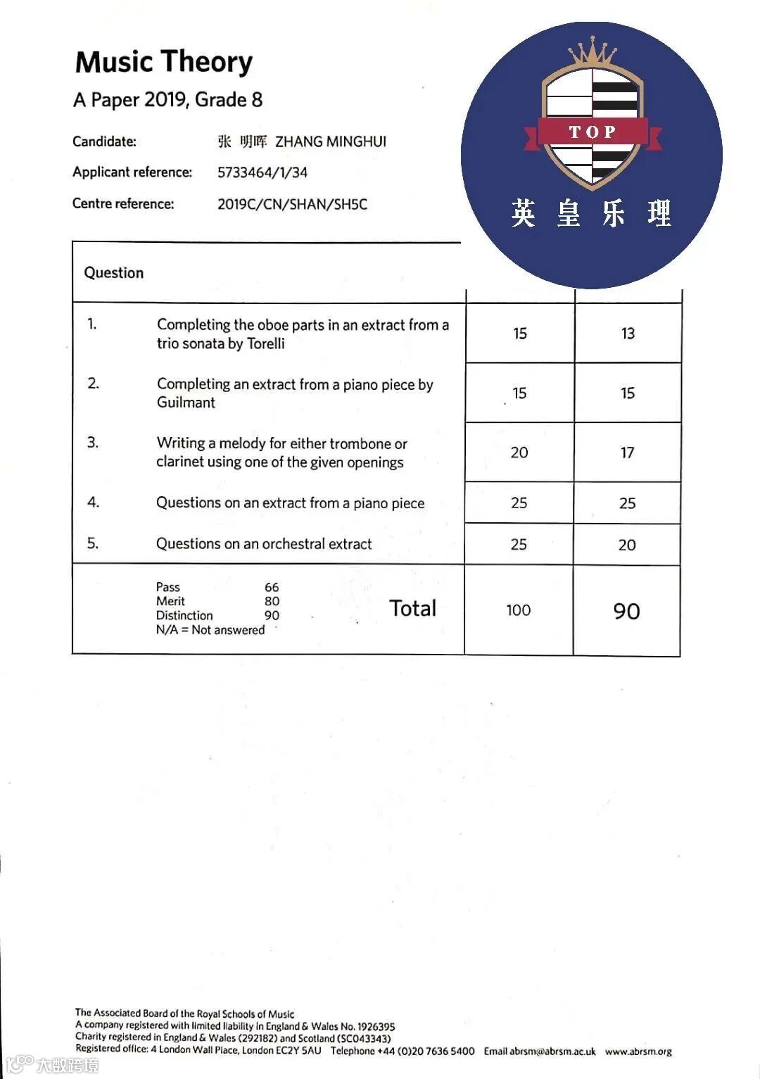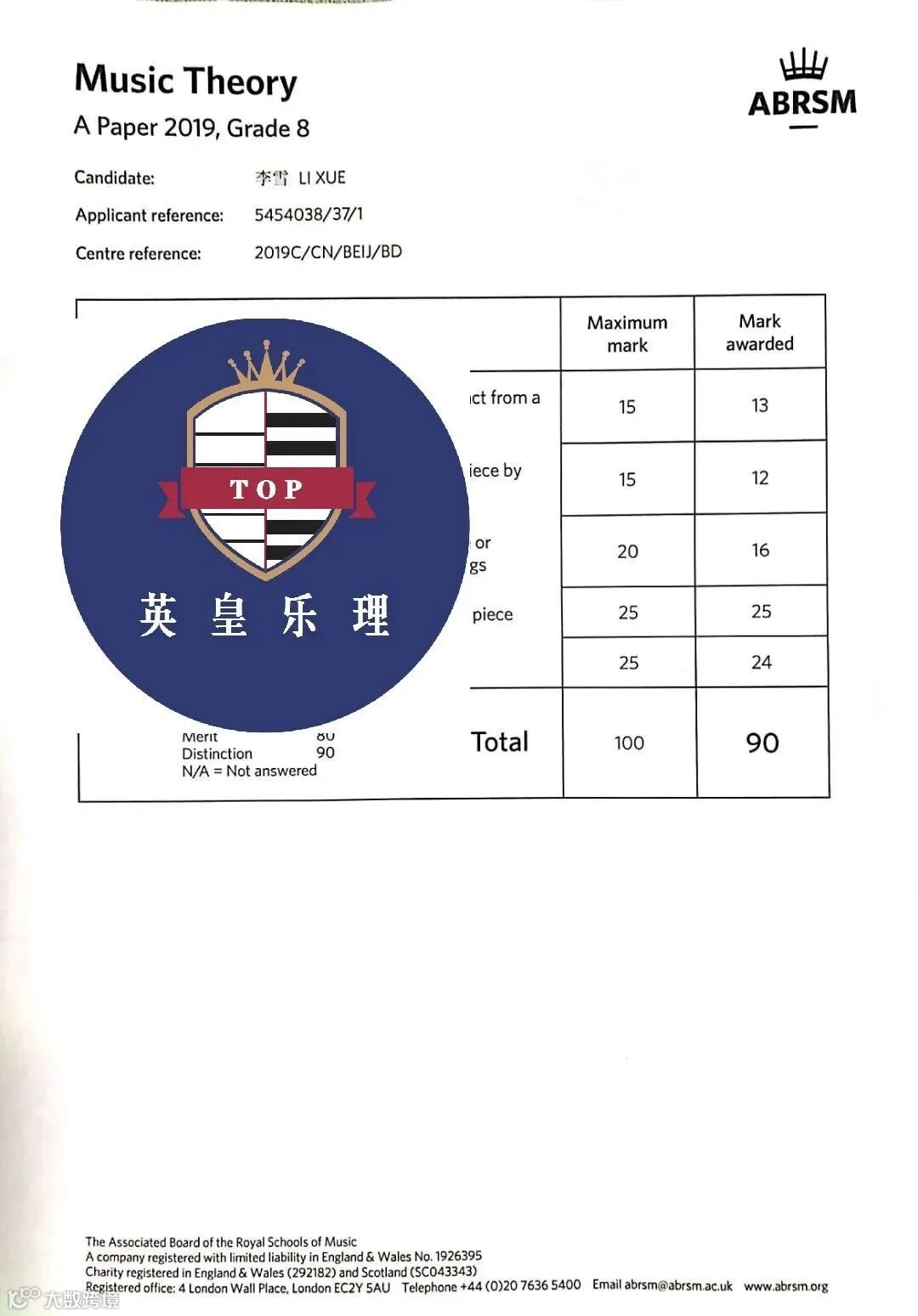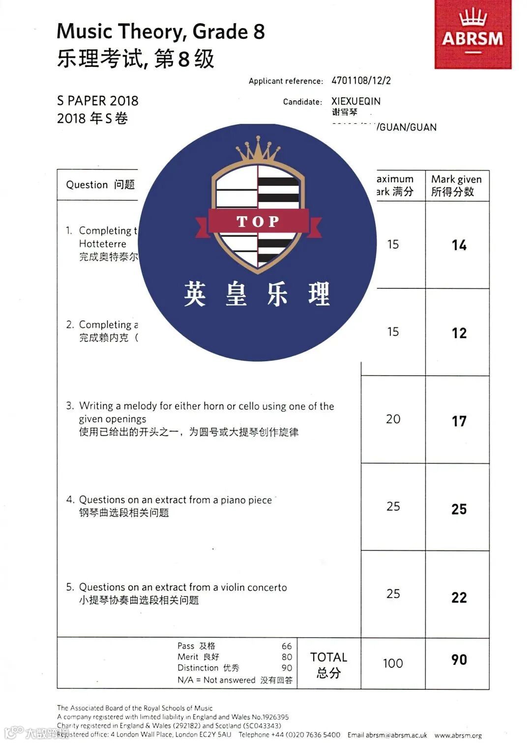 2019年6月起,“线下”与“线上”全面打通,开启互送模式。报“线下”免费学“线上”,报“线上”免费学“线下”。一费双用,为学员彻底学通高级别音乐理论保驾护航!全国率先发出勇夺8级90+优秀奖学金3000元的口号,最大限度的激发学习潜力! 2019年8月底,捷报传来!马涛老师6月22日英皇乐理8级学员有8位老师获得90+的Distinction(优秀)成绩!创下自大陆开考英皇乐理8级近10年以来单次考试优秀成绩人数最多的记录!至此已有10位学员获此殊荣!并成为国内拥有8级乐理优秀学员最多的指导老师!另有21位老师获得了80+的Merit(良好)成绩! 2019年12月中旬,捷报再次传来!马涛老师10月19日英皇乐理8级学员又有3位老师获得90+的Distinction(优秀)成绩!另有29位老师获得了80+的Merit(良好)成绩。至此已有13位学员获得90+优秀成绩!稳居国内8级乐理优秀学员指导老师首位! |