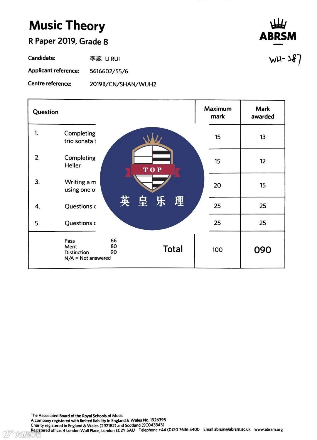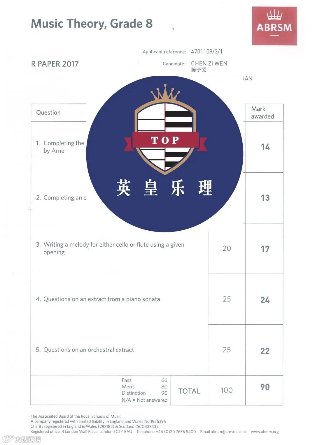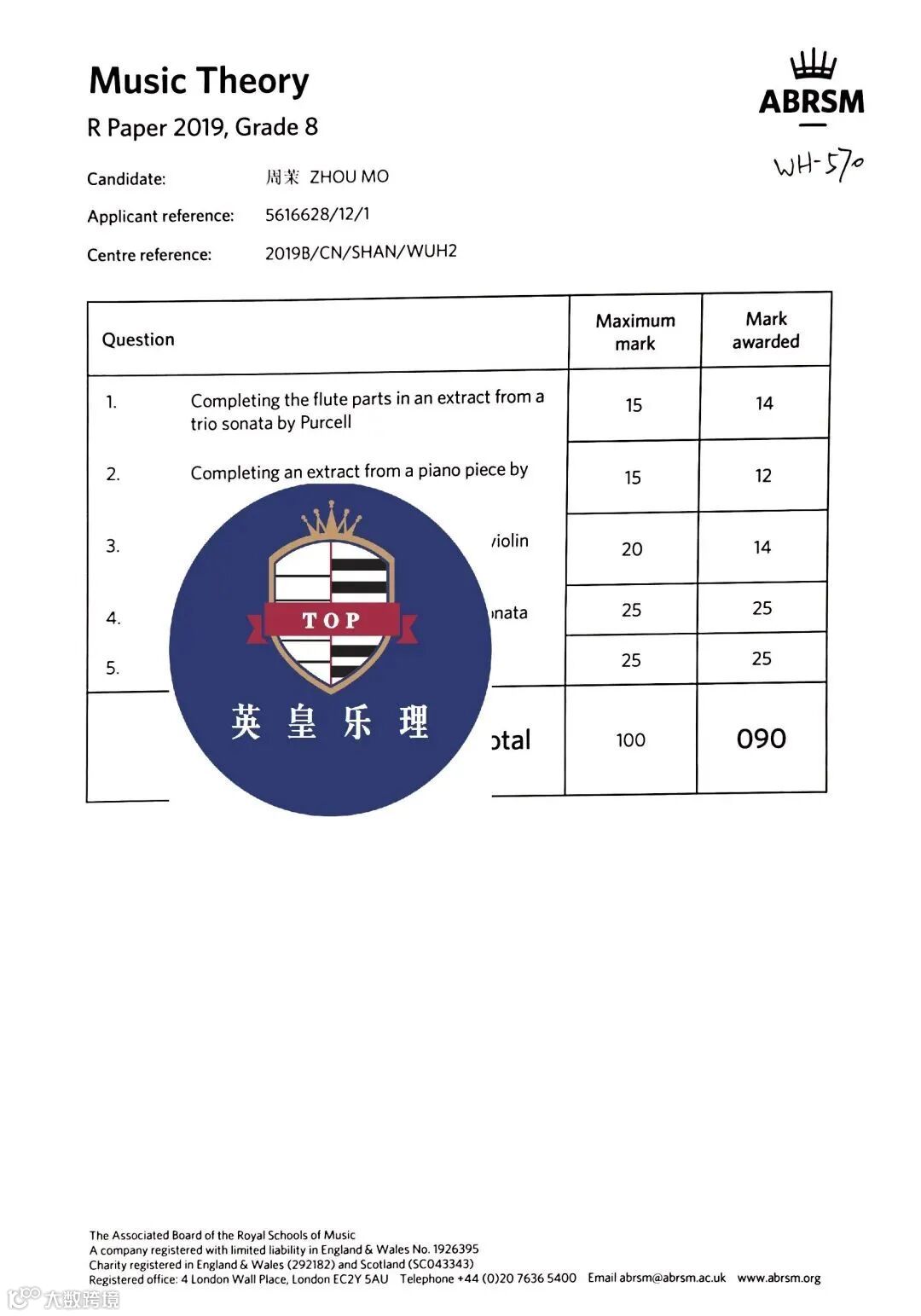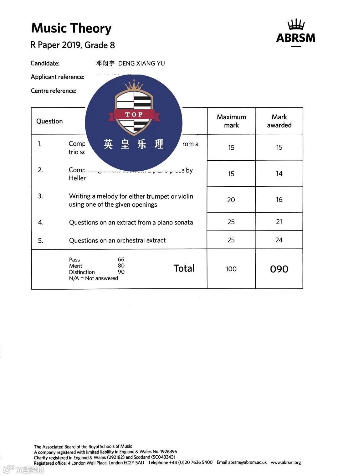 2019年6月起,“线下”与“线上”全面打通,开启互送模式。报“线下”免费学“线上”,报“线上”免费学“线下”。一费双用,为学员彻底学通高级别音乐理论保驾护航!全国率先发出勇夺8级90+优秀奖学金3000元的口号,最大限度的激发学习潜力! 2019年8月底,捷报传来!马涛老师6月22日英皇乐理8级学员有8位老师获得90+的Distinction(优秀)成绩!创下自大陆开考英皇乐理8级近10年以来单次考试优秀成绩人数最多的记录!至此已有10位学员获此殊荣!并成为国内拥有8级乐理优秀学员最多的指导老师!另有21位老师获得了80+的Merit(良好)成绩! 2019年12月中旬,捷报再次传来!马涛老师10月19日英皇乐理8级学员又有3位老师获得90+的Distinction(优秀)成绩!另有29位老师获得了80+的Merit(良好)成绩。至此已有13位学员获得90+优秀成绩!稳居国内8级乐理优秀学员指导老师首位! |