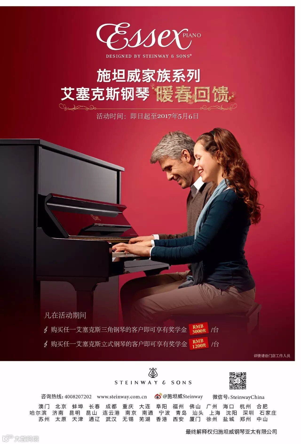 1. 活动期间购买任一艾塞克斯三角钢琴的私人客户即可享有奖学金人民币3,000元(叁仟圆整)/台。