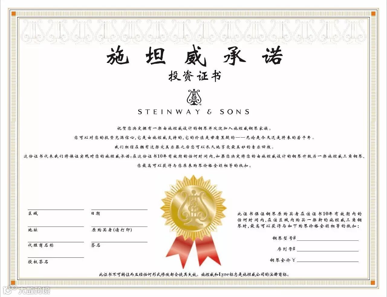 拥有一架施坦威钢琴的梦想并不遥远,可以从拥有一架艾塞克斯钢琴开始。随着演奏技巧的提升,您会发现您需要更高水准的钢琴。此时,施坦威钢琴将会是您理想的选择。我们不仅提供顶尖专业水准的音乐会钢琴,更想让您在施坦威的陪伴下对未来的音乐之路充满信心。这就是为什么施坦威对艾塞克斯钢琴的购买者提供承诺:如果在十年内,您打算将您的艾塞克斯钢琴升级为一台全新的施坦威三角钢琴,您最高可以将该艾塞克斯钢琴当初购买的原价进行抵扣。