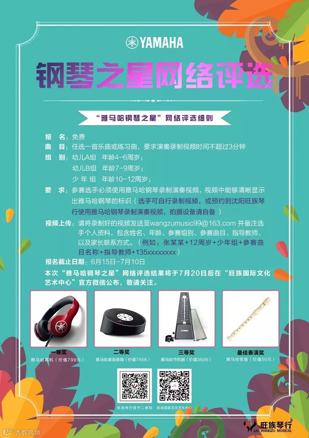 本次“雅马哈钢琴之星”网络评选结果将于7月20日后在“沈阳旺族国际文化艺术中心”官方微信公布,敬请关注。