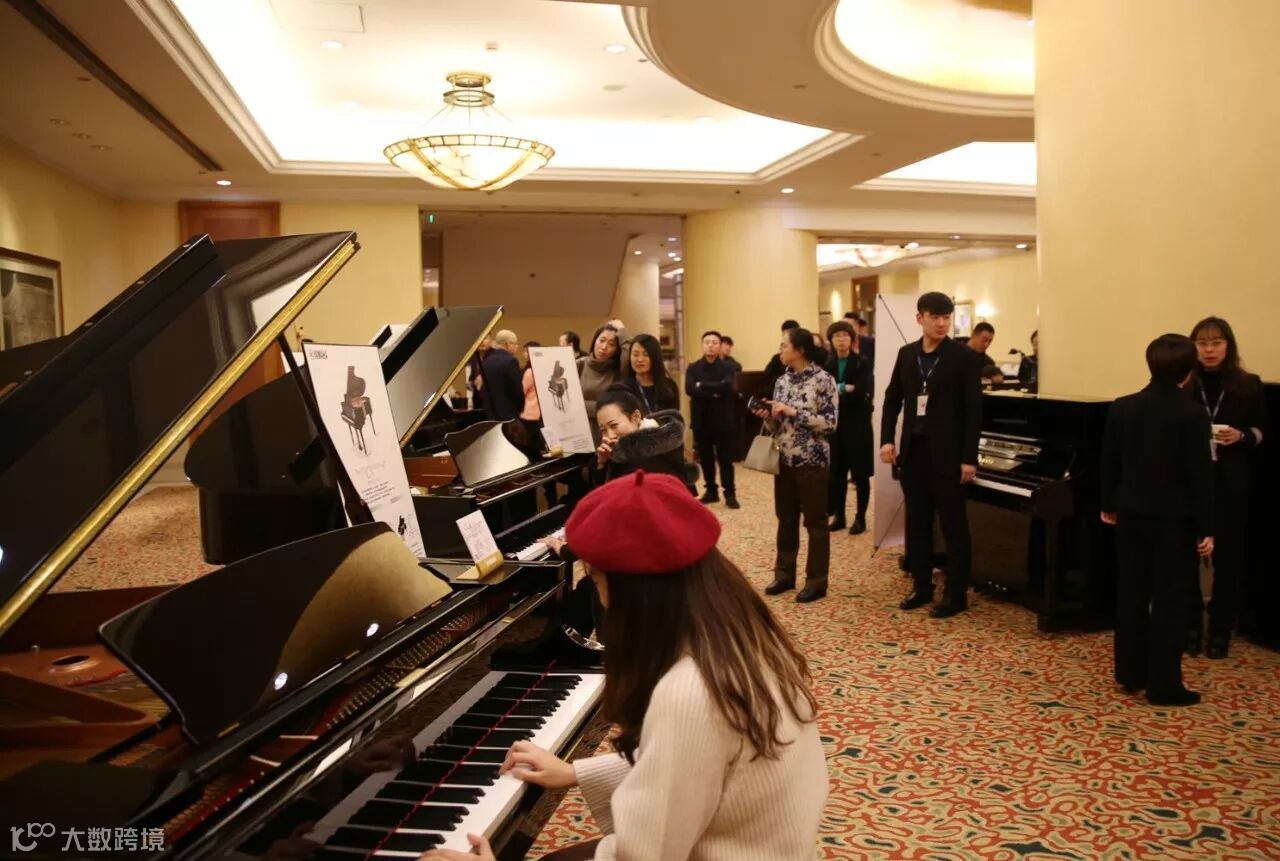 中场休息:教师朋友们在品鉴、试奏雅马哈高端钢琴。