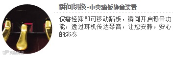 雅马哈静音钢琴系列融和了声学钢琴(传统钢琴)与雅马哈先进的数码技术,只需简单移动中央踏板,即可开启静音功能,透过立体声耳机独享钢琴乐音,尽情享受弹奏乐趣,而不必顾及妨碍他人。这对大家庭成员、城市公寓居民和工作到深夜的音乐家们来说,无异于是一个天大的福音。