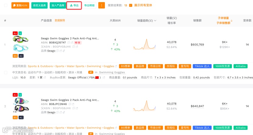 方法二:通过卖家精灵查竞品功能批量获取全部子体
