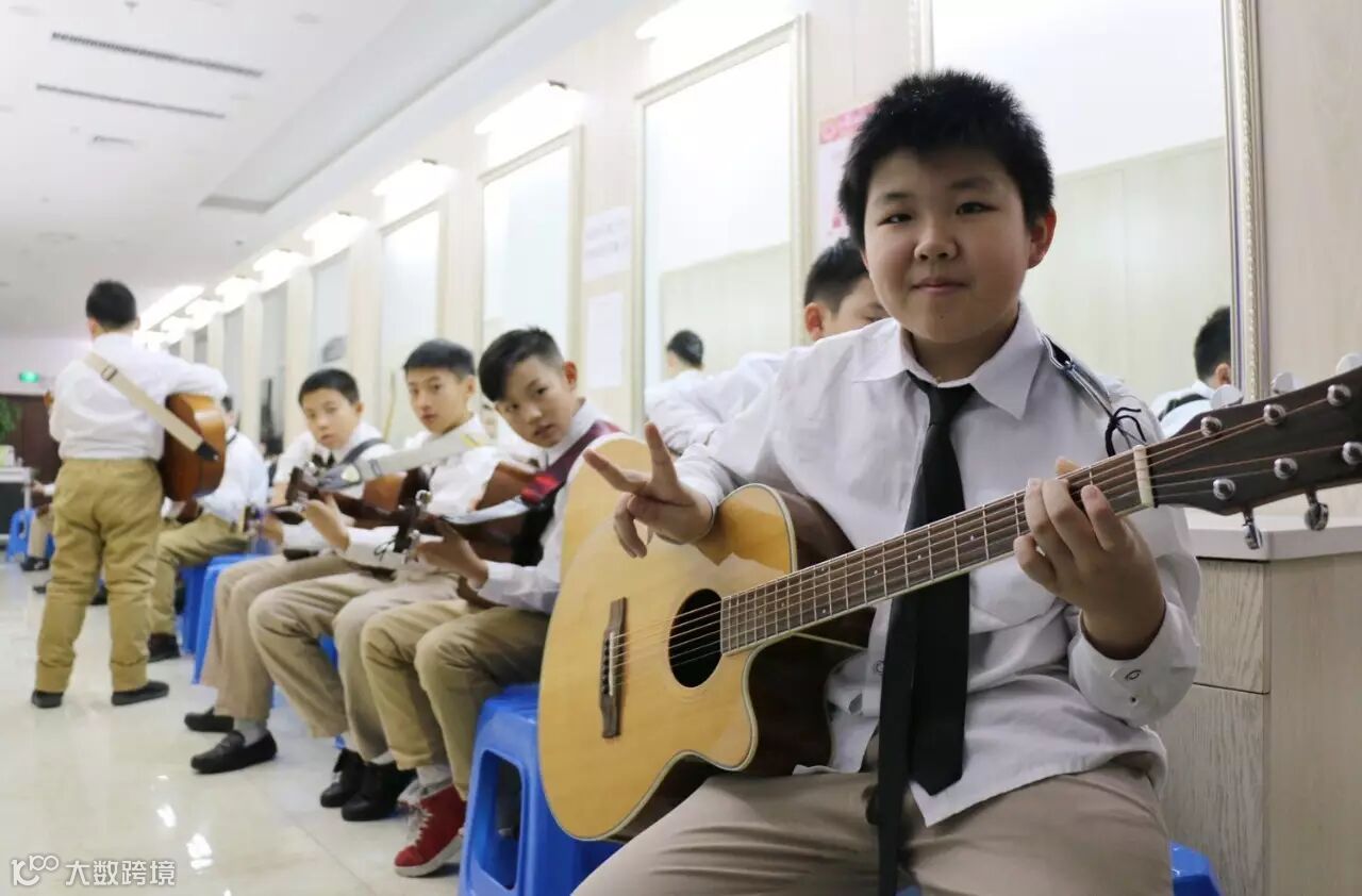 一群帅气的小少年(还有一位小少女)抱着吉他走上台,在电声乐队的伴奏下边弹吉他边演唱《童年》,气势恢弘。