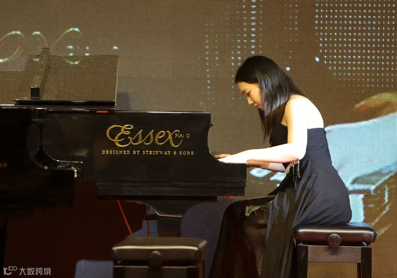 年轻的演奏家在施坦威家族三角钢琴上驰骋演奏,美妙的音符在宴会厅中回荡,彰显施坦威家族钢琴的高贵音色与品质。