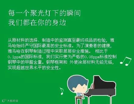 让雅马哈品牌的理念从钢琴扩展到我们快乐的生活中,让每一架雅马哈钢琴为你奏出音乐梦想的旋律。