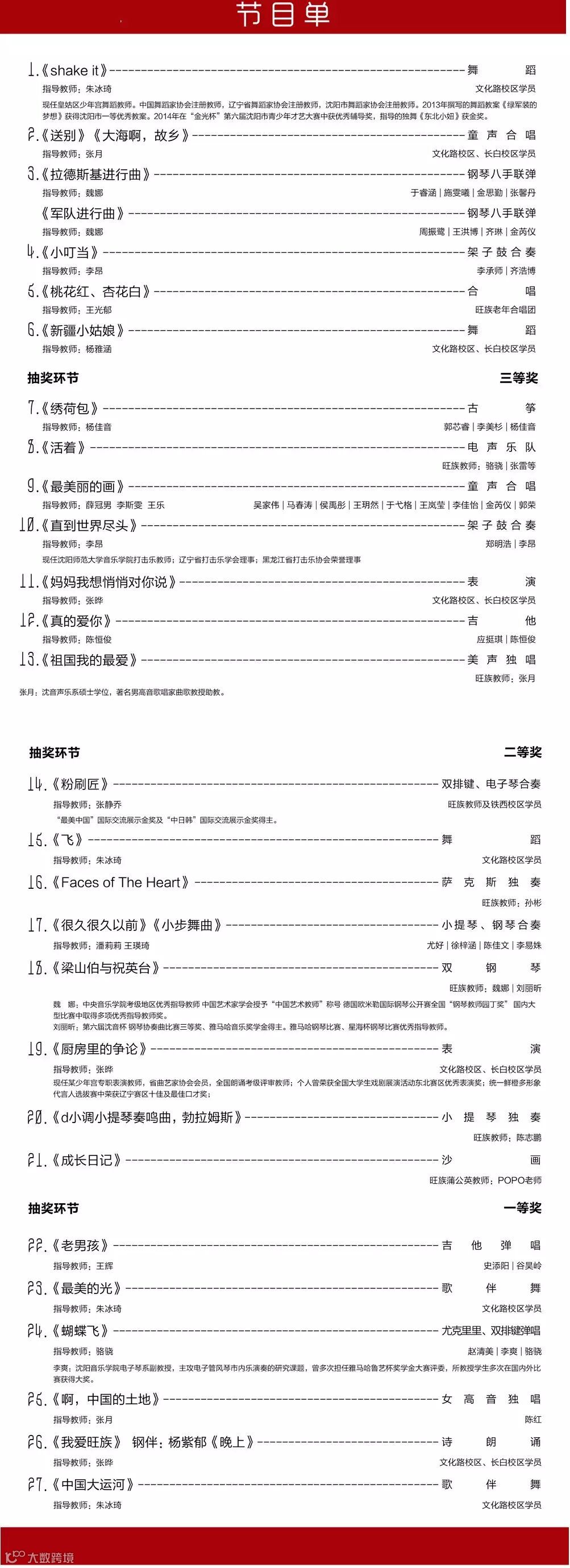 六天之后的演出中,朱老师将带领她的学员们为大家献上《Shake it》、《最美的光》、《飞》、《中国大运河》四个节目,这四个舞蹈节目风格各异,必定会为大家带来美妙的感受,敬请期待!