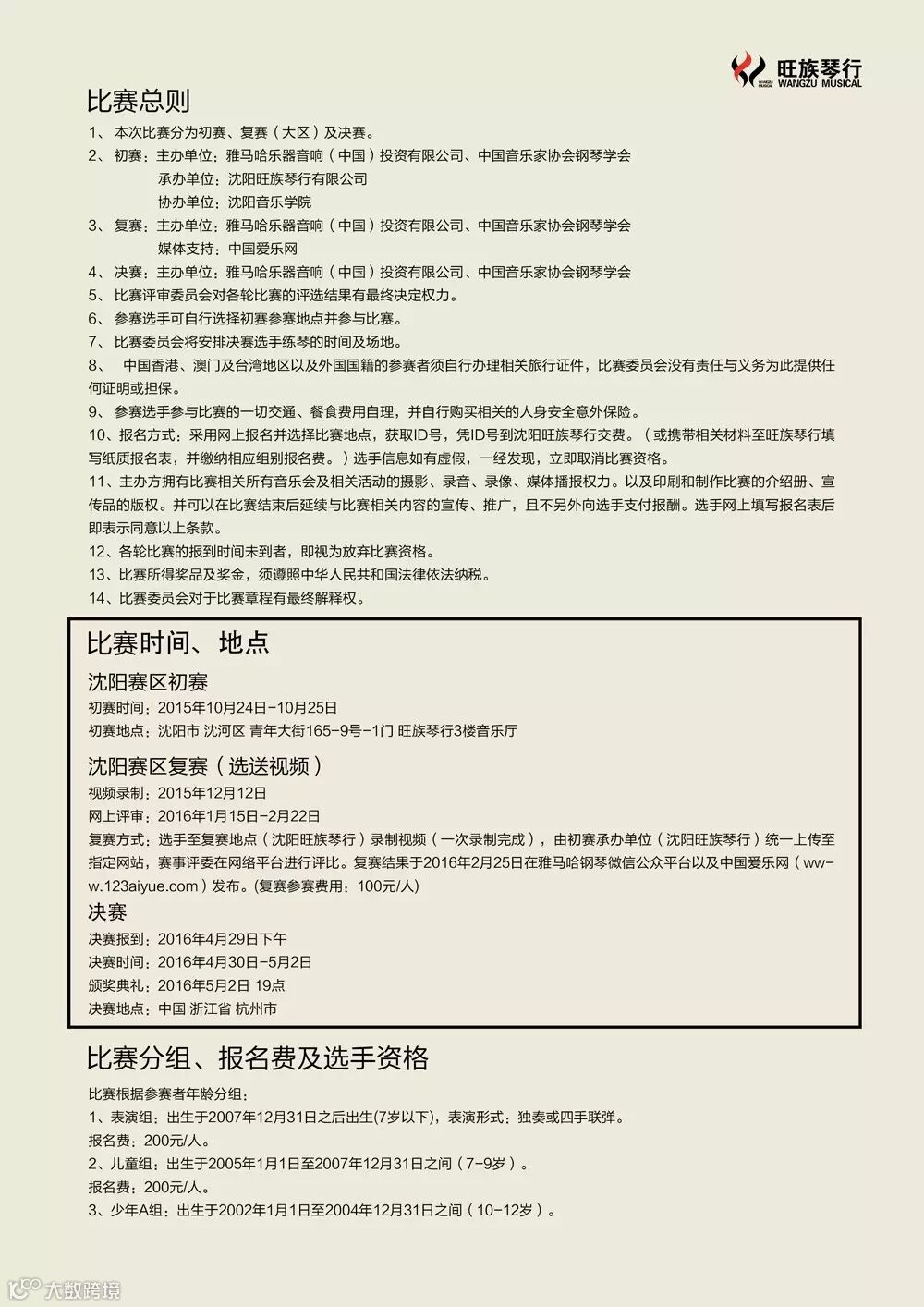 导读:第二届雅马哈全国钢琴比赛沈阳赛区——章程&报名方式
