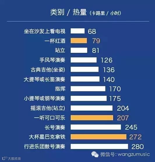 美国的「卡路里计」网(caloriecount)统计、整理了日常生活中各种活动所消耗的能量,「演奏乐器」一项也在其中。