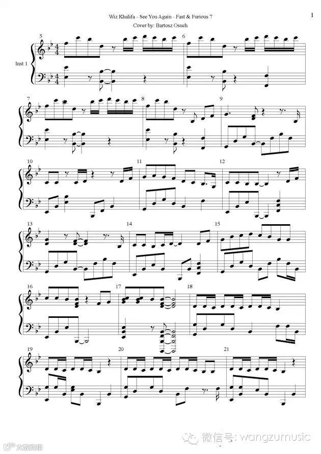 【福利来了】《速7》片尾曲 《See You Again》钢琴谱