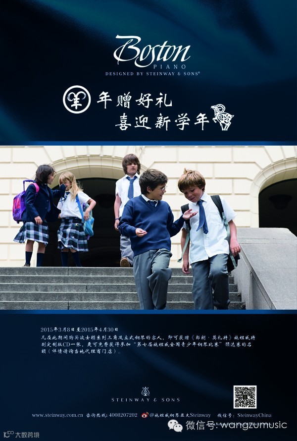 活动期间购买波士顿系列三角钢琴的客人,即可获赠《郎朗.莫扎特》施坦威特别定制版CD一张,更可免费获得参加“第七届施坦威全国青少年钢琴比赛”预选赛的名额。
