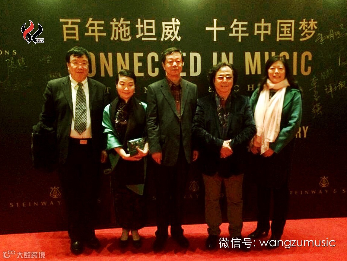 (左起:沈阳音乐学院附中校长张东盾先生、施坦威中国总经理位炜女士、沈阳音乐学院副校长张力伟先生、郎朗父亲郎国任先生、沈阳旺族琴行有限公司总经理程艳萩女士)