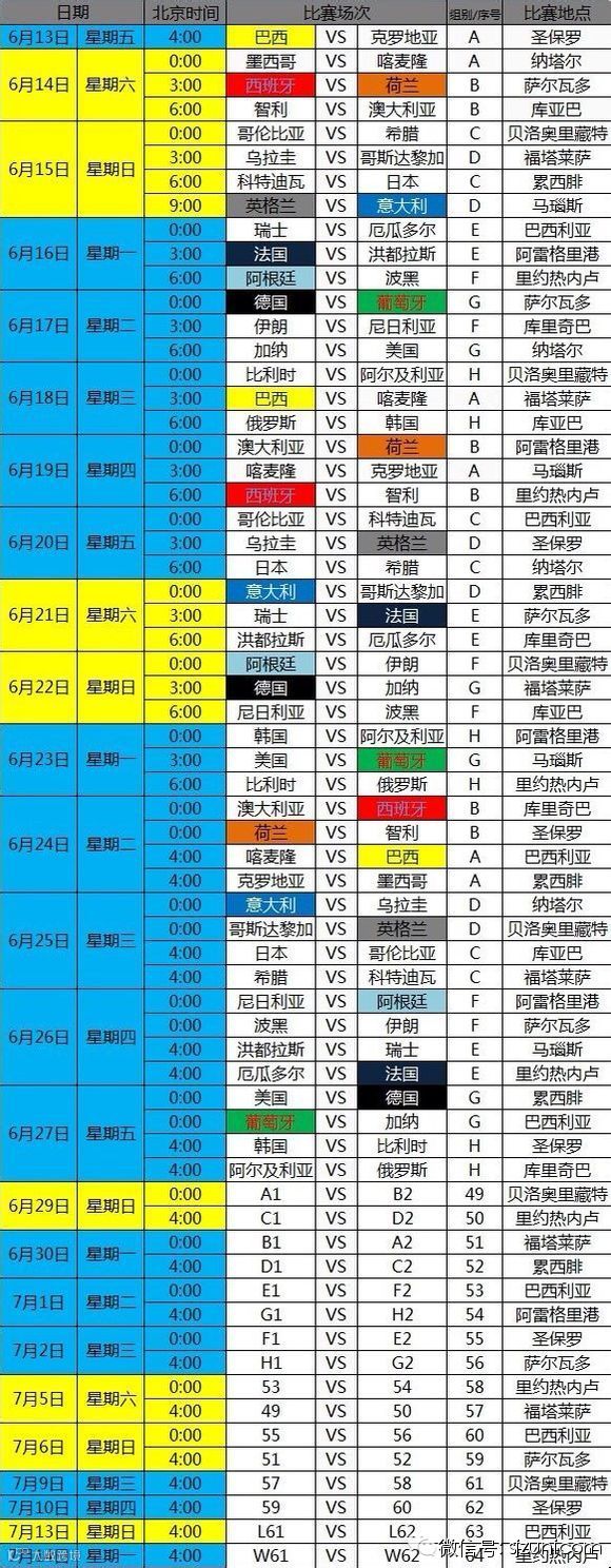 下面我们把第二十届世界杯的赛程转发给大家