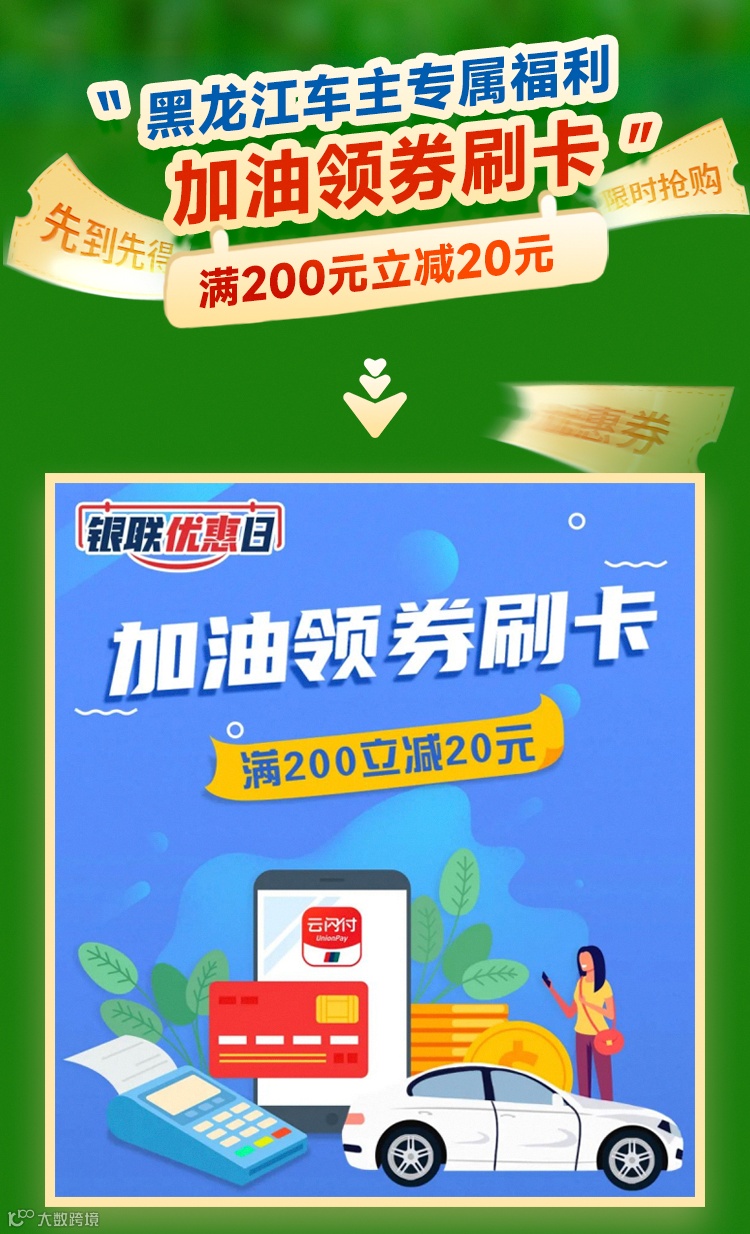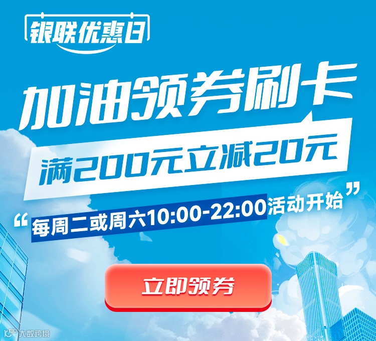 导读:加油领券刷卡!满200元立减20元!