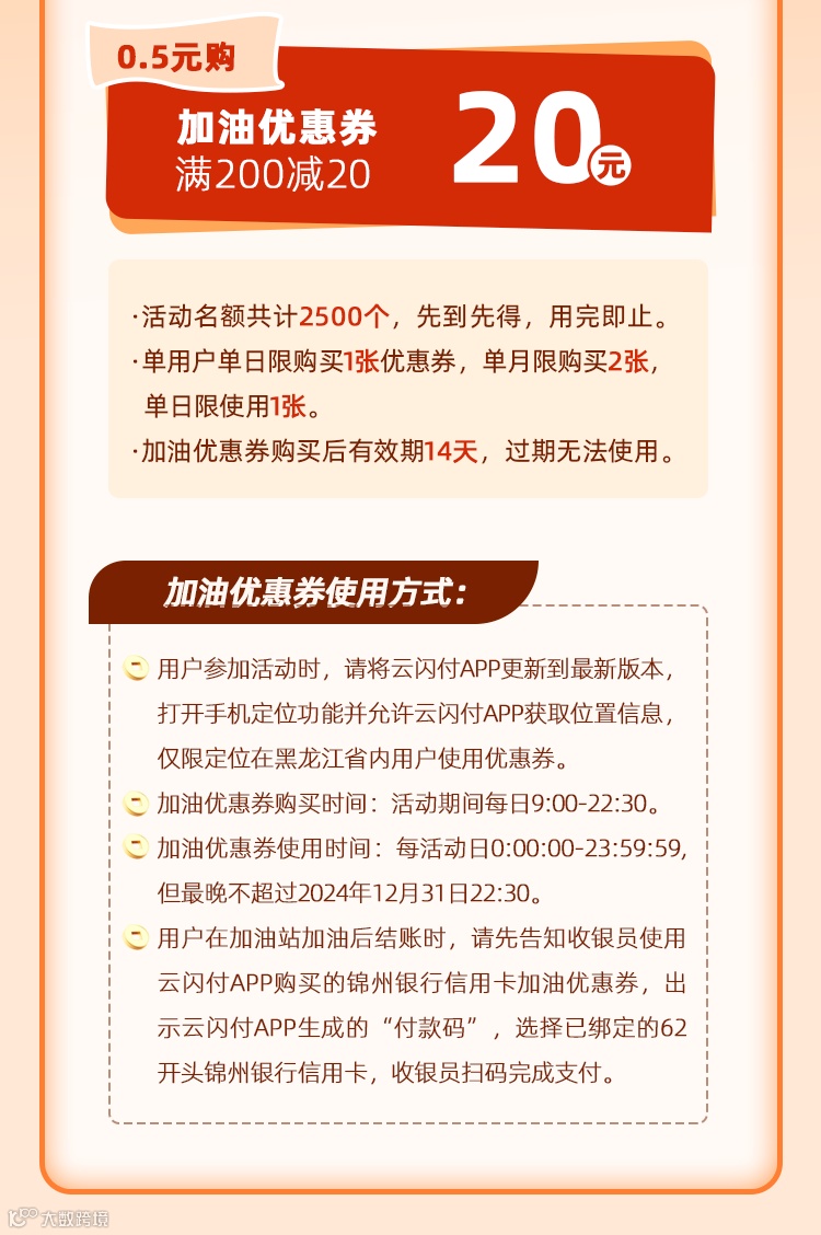 导读:锦州银行0.5元抢加油券!满200减20!点击看详情!