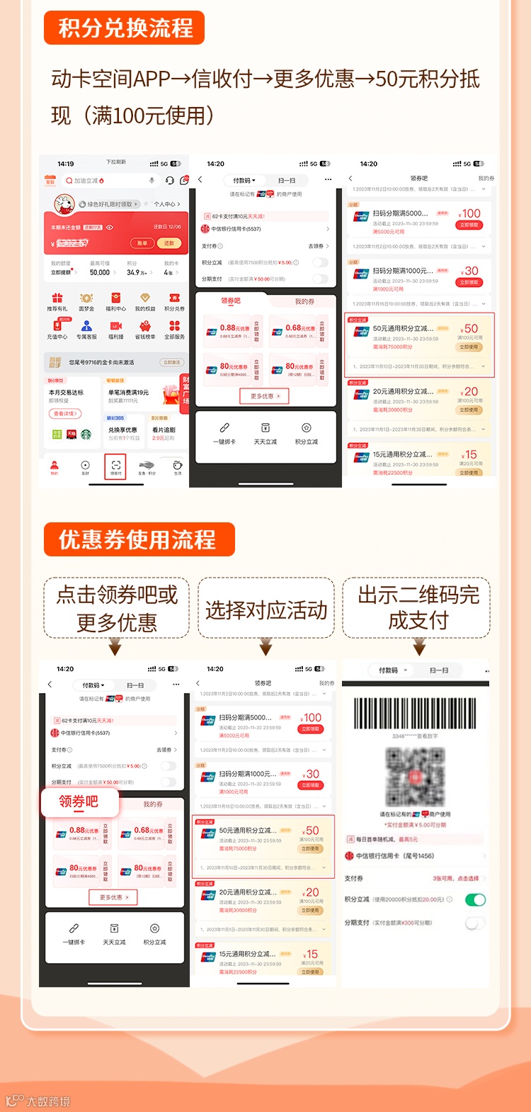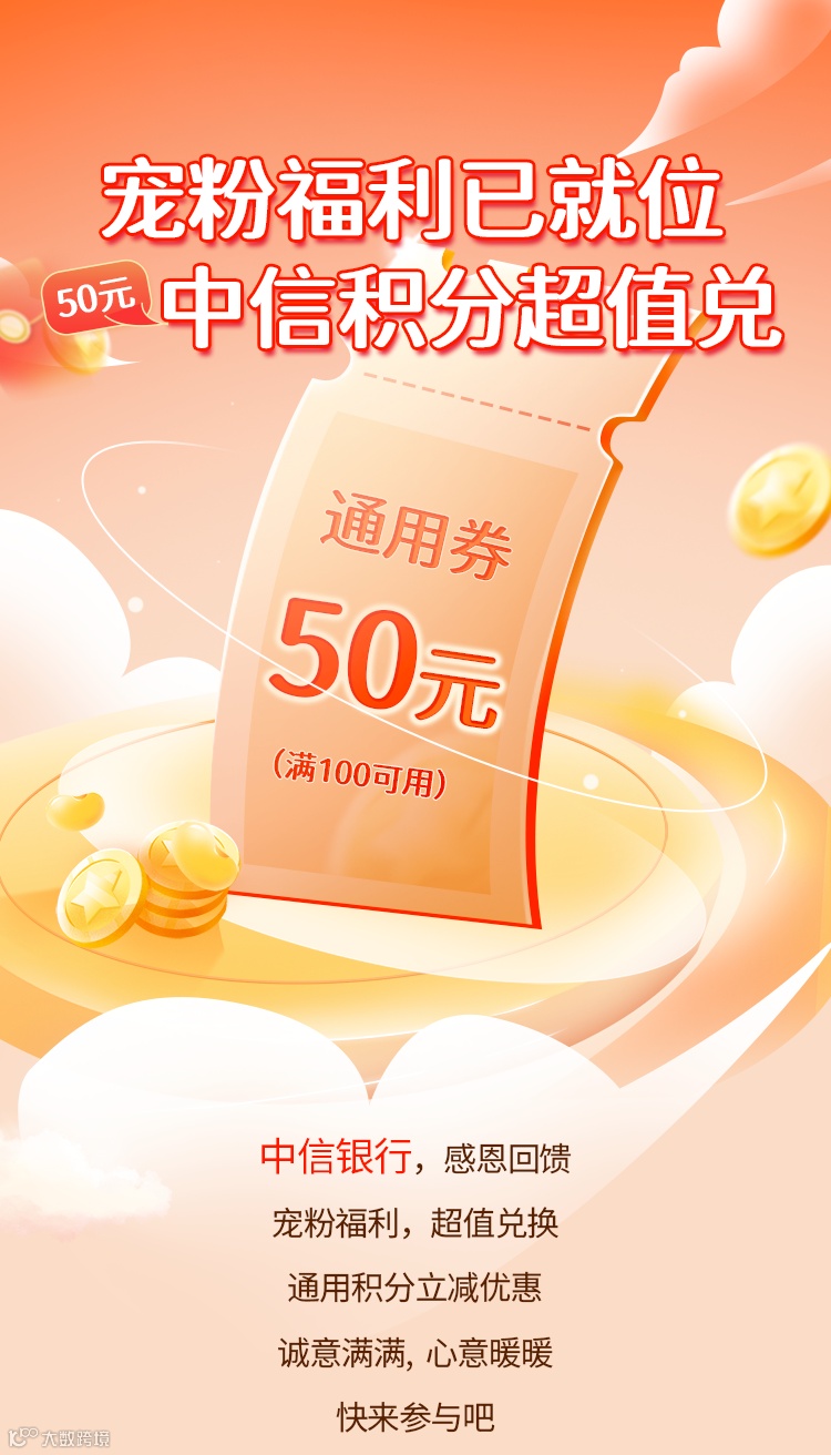 中信福利快来兑!满100减50!