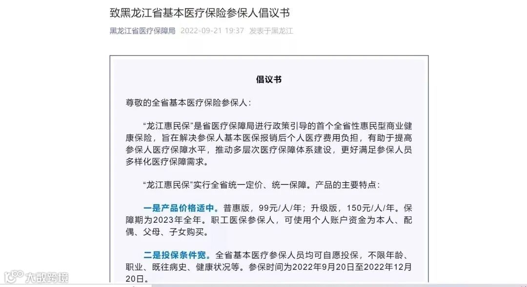 答:无论户口所在地是哪里,无论工作地点在哪里,只要您是黑龙江省职工基本医疗保险、黑龙江省城乡居民基本医保、铁路医保、农垦医保、森工医保已缴费且为在保状态的参保人,均可以购买。