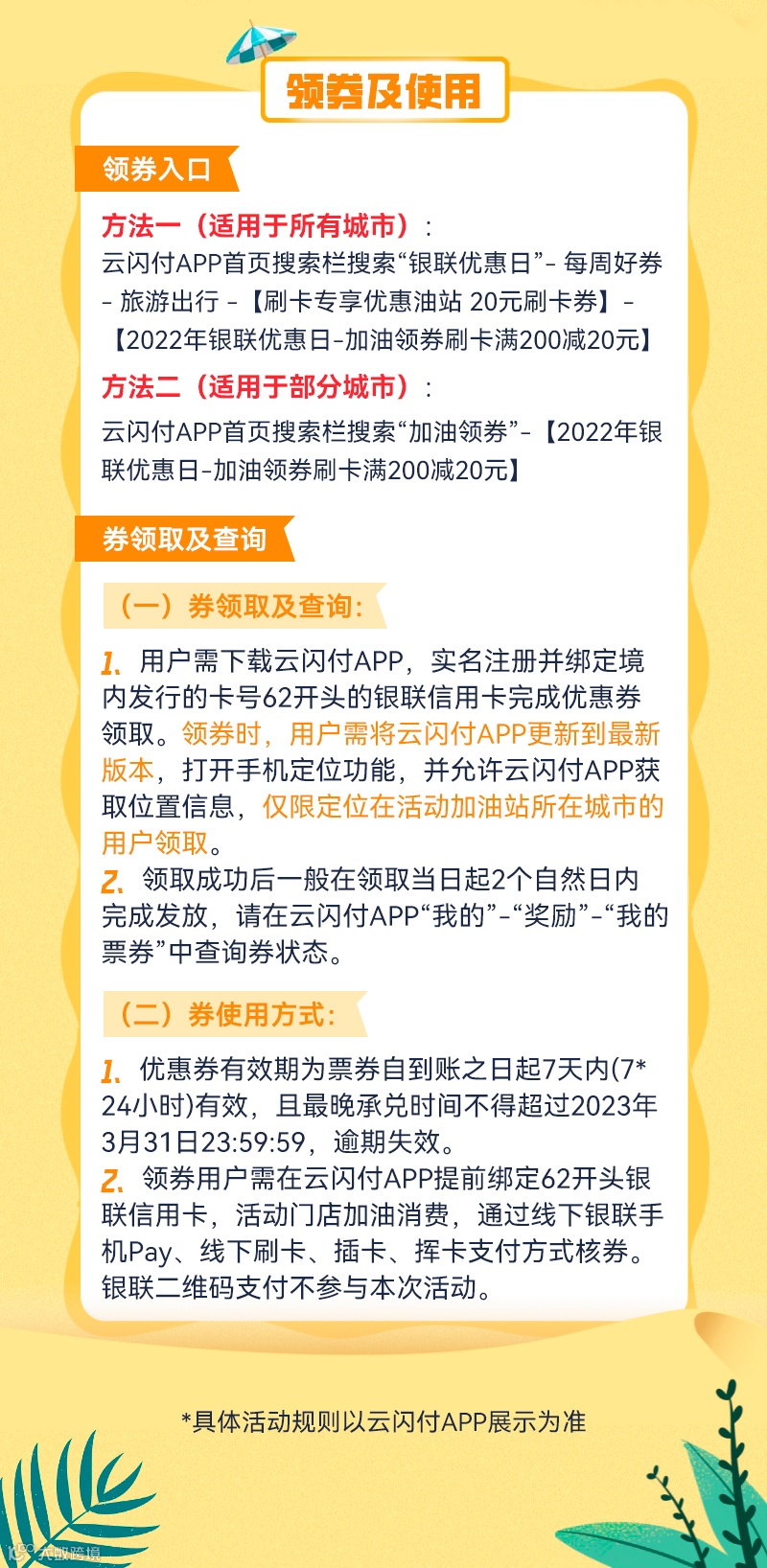 云闪付福利!满200元减20元!