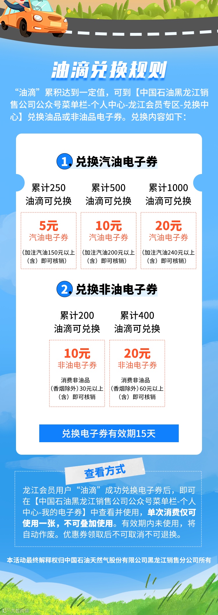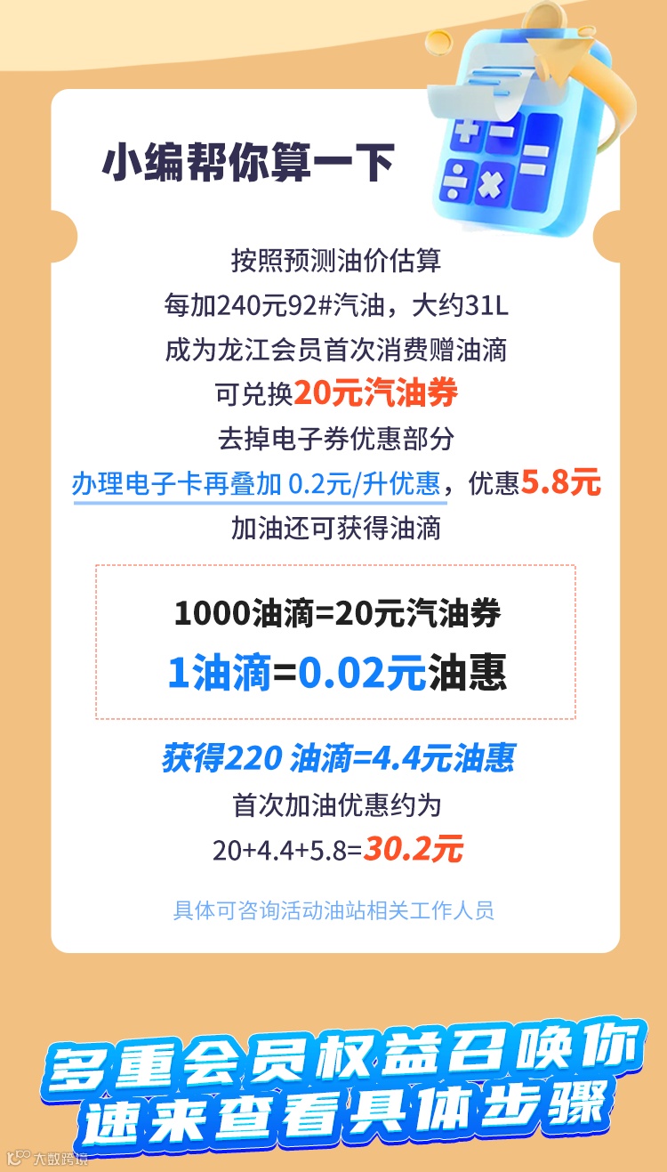 导读:14个活动油站!认证龙江会员!油滴换电子券,快来看↓