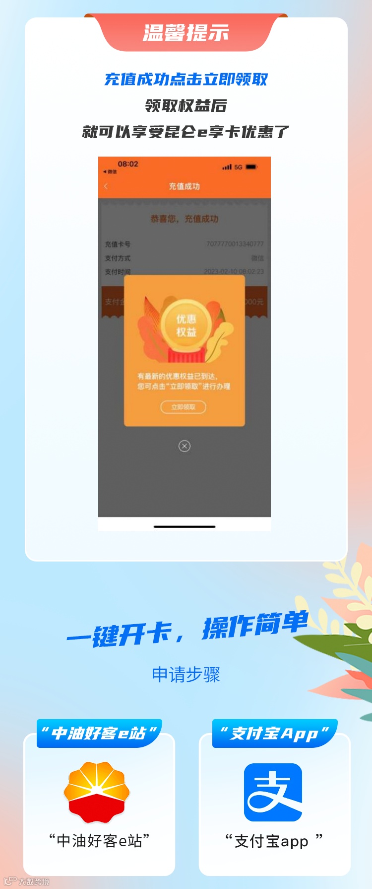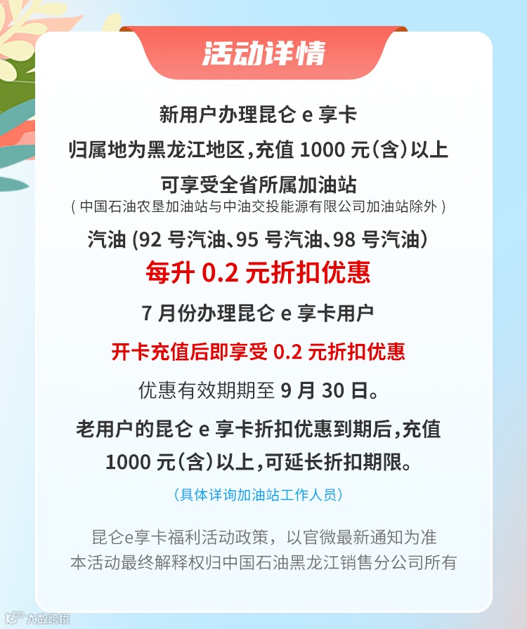 导读:一键开通昆仑e享卡!每升优惠0.2元!