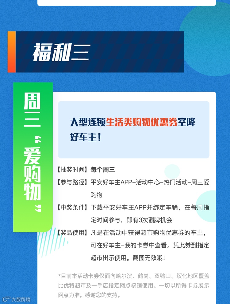 导读:【限量抽取】周一洗车券、周三比优特购物券、周五礼品券、周末加油打折券