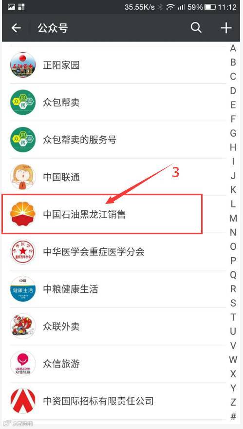 或者在“通讯录”—“公众号”里找到“中国石油黑龙江销售”