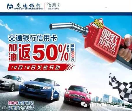 在中国石油黑龙江销售指定加油站,刷指定交通银行信用卡消费,即可有机会享受当日消费金额的50%刷卡金返还,最高可达200元!