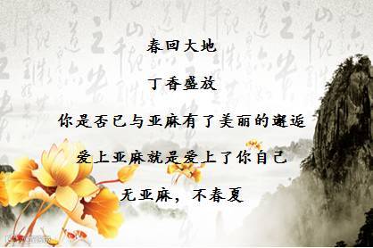导读:春回大地丁香盛放你是否已与亚麻有了美丽的邂逅爱上亚麻就是爱上了你自无亚麻,不春夏回归质朴与柔软,回归布衣精神