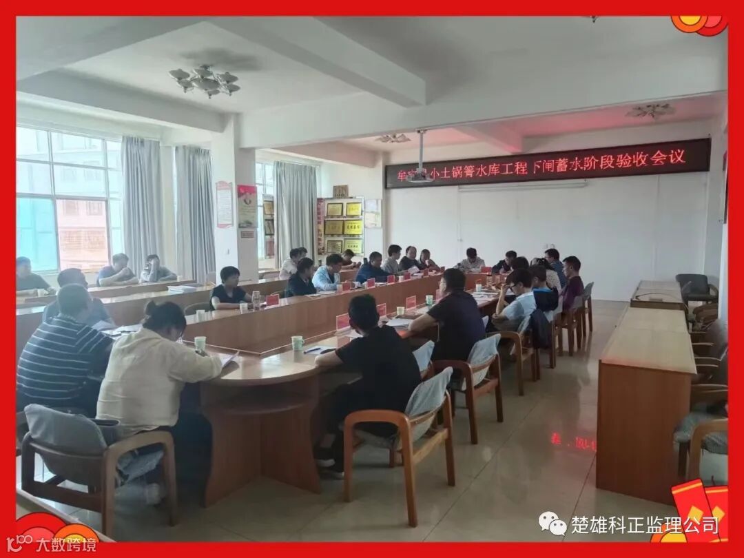 2022年4月27日下午15:30,所有参加验收单位人员在县联合灌区四楼会议室集中开牟定县小土锅箐水库工程下闸蓄水阶段验收会议。