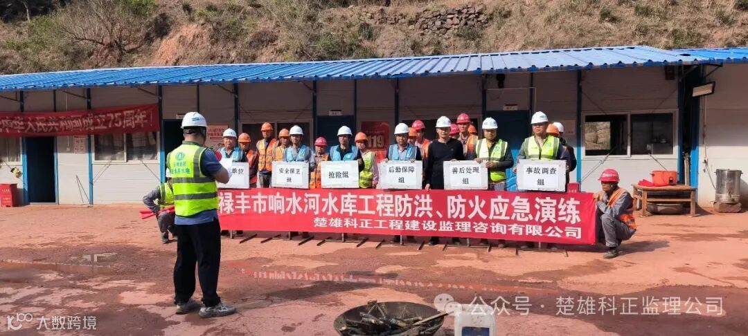 为进一步检验响水河水库防洪应急预案的可操作性,提高响水河水库工程各参建单位遇到超标准洪水时的快速反应能力及广大施工人员的防灾避灾能力,完善抢险救灾体系。由我公司与工程建设管理局、施工单位、质检单位共同参与应急演练,于2025年4月11日上午10:30分,在禄丰市响水河水库枢纽工程项目部组织演练。