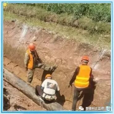 灌区配套改造项目,利国惠民,功在千秋,参建人员,责任重大。2022年3月22日,施工人员正在对预先放好的管道进行焊接,楚雄科正监理公司姚安县项目监理部人员李明、字学伟现场检查、监督工程施工,在保证工程进度的同时,按照设计要求,严把质量关。