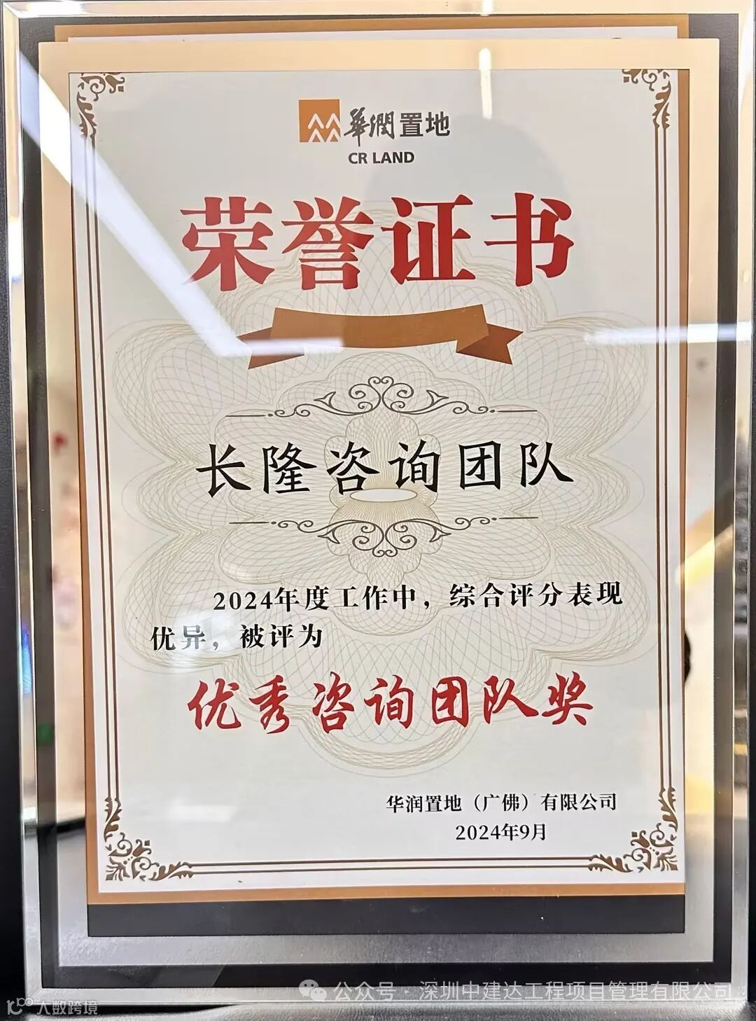 ➤深圳中建达喜获深圳市建设工程造价管理站2024年度合同履约评价“优秀”及肯定