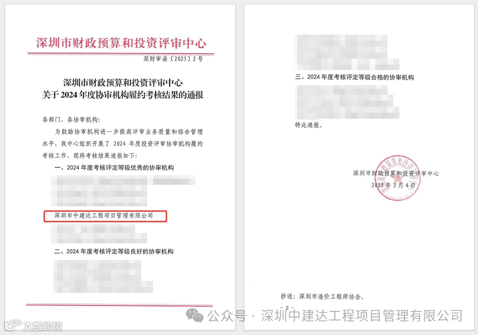 ➤深圳中建达喜获深圳市财政预算和投资评审中心2024年度“优秀协审机构”