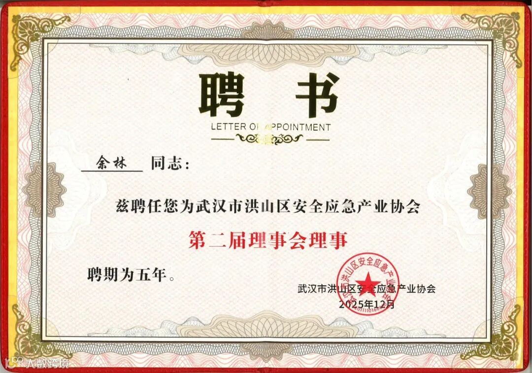与此同时,公司执行总经理余林同志凭借其在安全应急领域的专业能力和突出贡献,光荣当选为武汉市洪山区安全应急产业协会第二届理事会理事。这不仅是对余林同志能力的嘉许,也是协会对我司行业地位与影响力的充分认可。