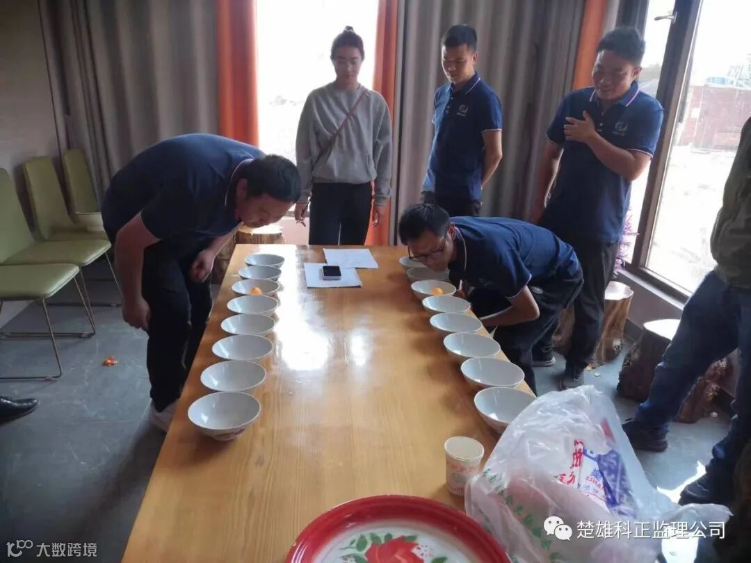 吹乒乓球比赛活动项目,以时间计,从一个方向吹着乒乓球从每个大碗中经过并到达最后一个大碗,以用时最短到达的前三名为胜。科正员工段佳勇,张丞、张永伟等正在积极而又耐心的参赛中。